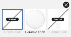 10-15-2025 Ceramic PullsDrawer and Cabinet style pulls are "Temporarily sold out" |