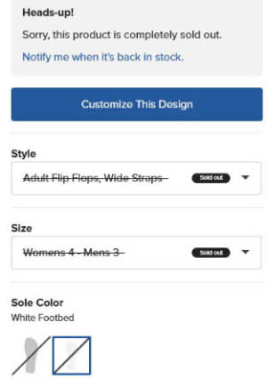 10-15-2025 Flip-FlopsAll sizes, styles, and color variations are "Completely sold out"Note from Fiona on 11/05/2024: "Long Term OOS, no ETA" Note from Mark on 5/9/2025: "We don't have an ETA on flip-flops returning yet, but if I hear any news, I will update this thread." |