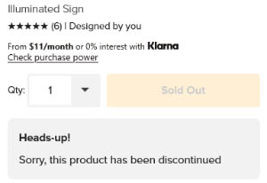 10-15-2025 Illuminated SignNo shapes or sizes available; listed as "Discontinued" |