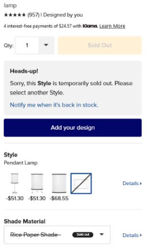 10-15-2025 Lamps (and Shades)Pendant Lamp is "Temporarily sold out"