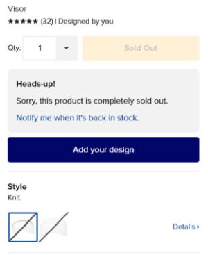 10-15-2025 Visor (Headsweats brand)Both knit and woven styles are "Completely sold out" This is a long-term OOS item so presumed |