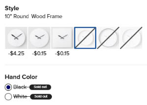 10-15-2025 Wall ClocksAll 10" round wooden frame styles are "Temporarily sold out" |
