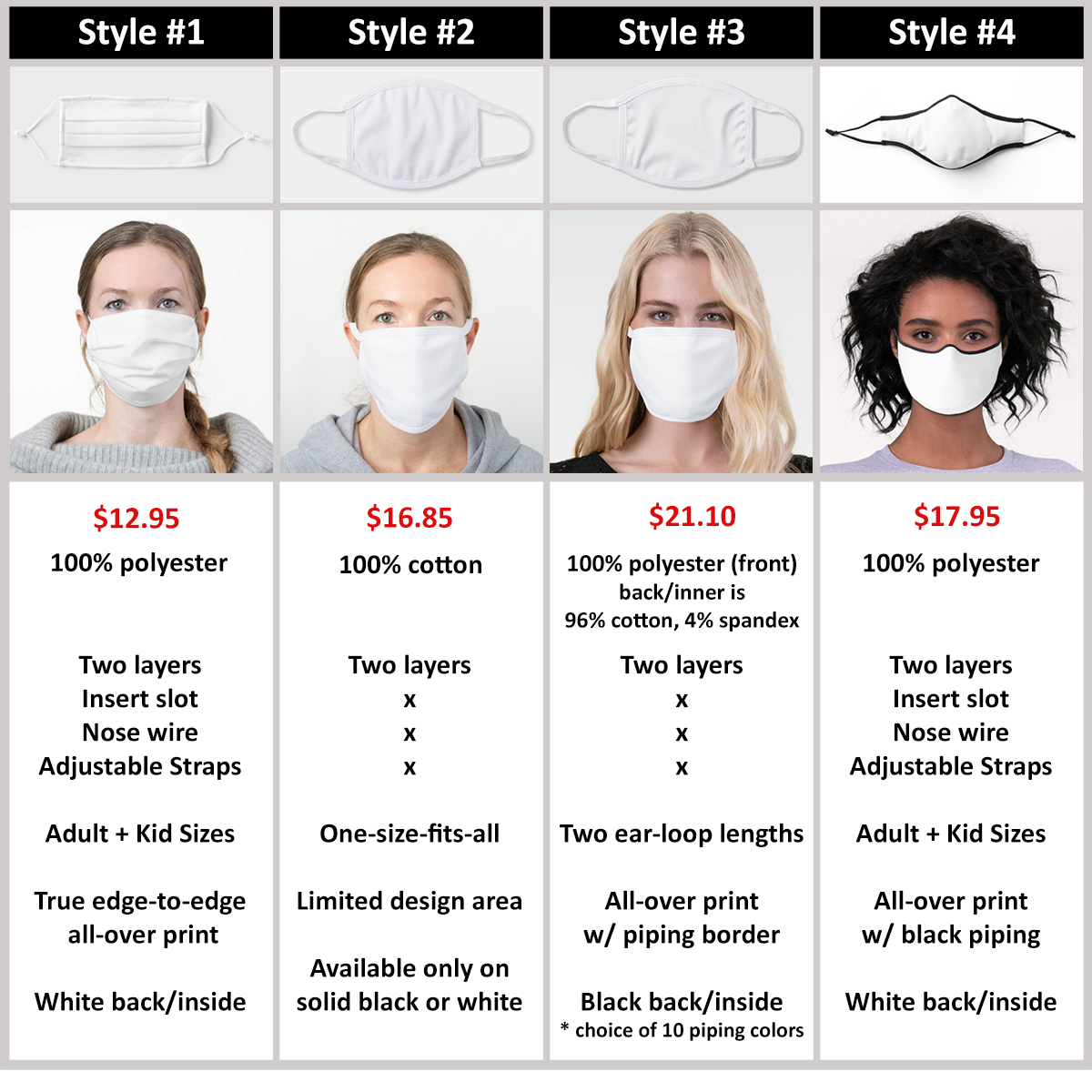 Zazzle offers four different face mask styles with a range of features and fabrics.